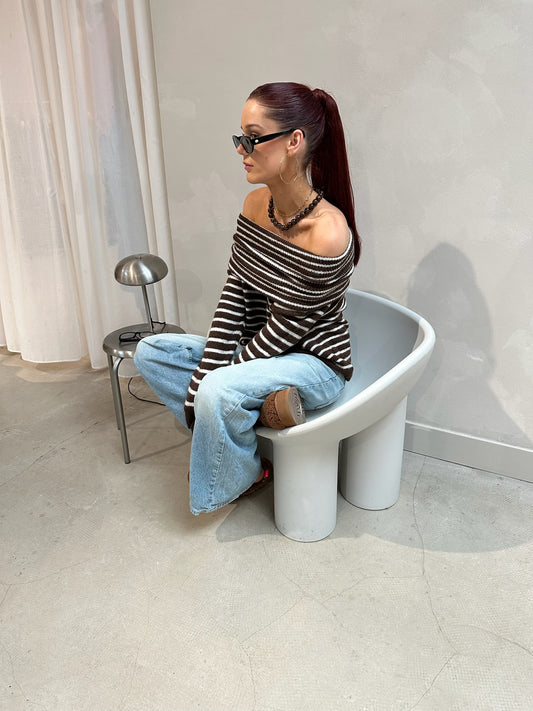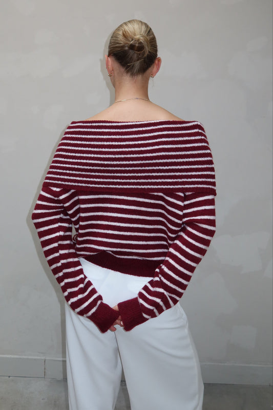 Off the Shoulder Burgundy Knitted Sweater - Curated by ume