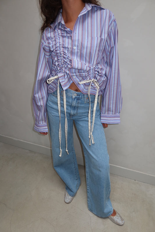 Purple striped lace string blouse - Upcycled by UME