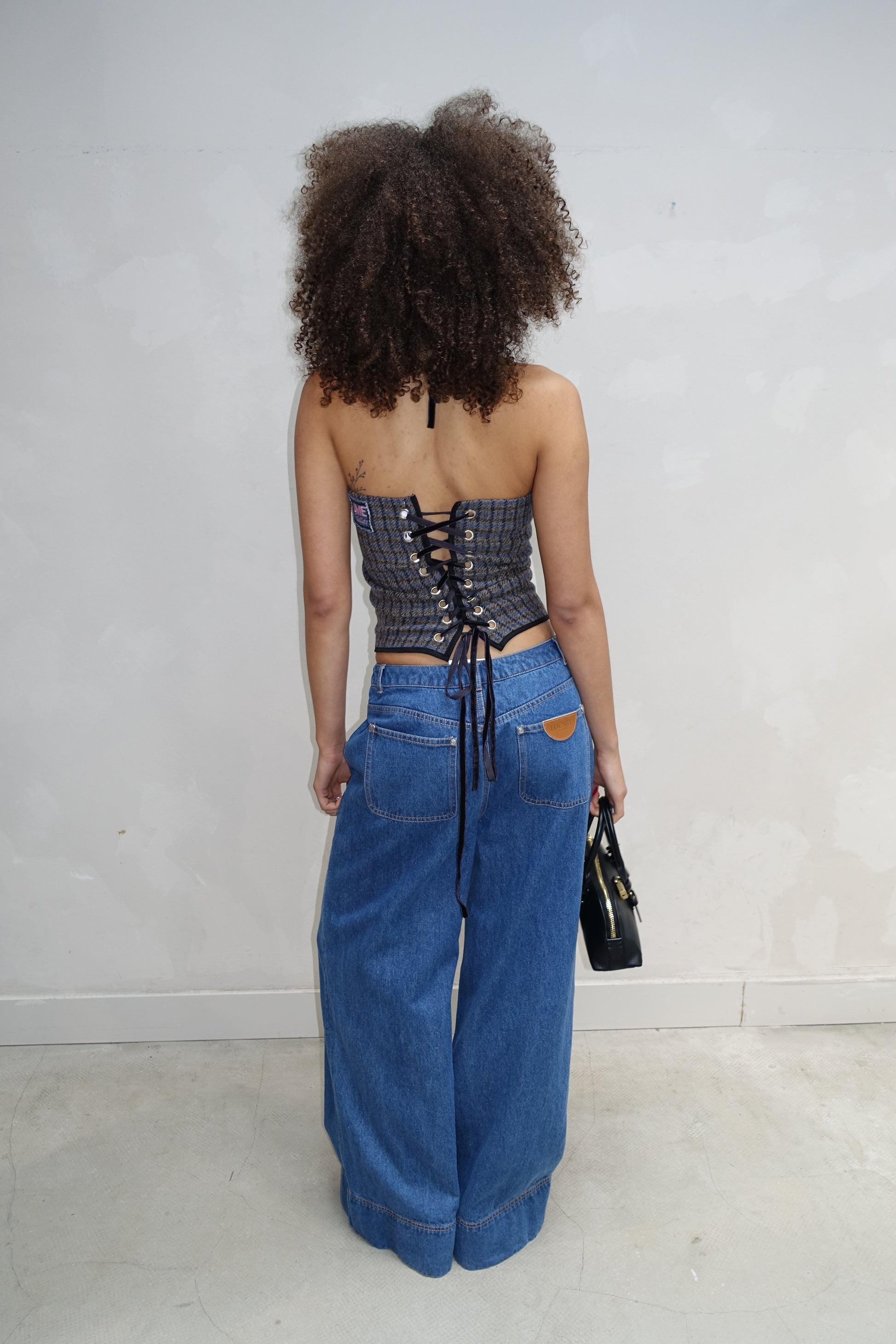 Handcrafted in our Amsterdam atelier, An upcycled top–corset with a matching collar — unique, bold, and beautifully reconstructed. The lace-up back adds an unexpected touch of drama, giving this piece a sculpted, couture-inspired silhouette. A one of a kind design created with care, intention and modern craftsmanship.