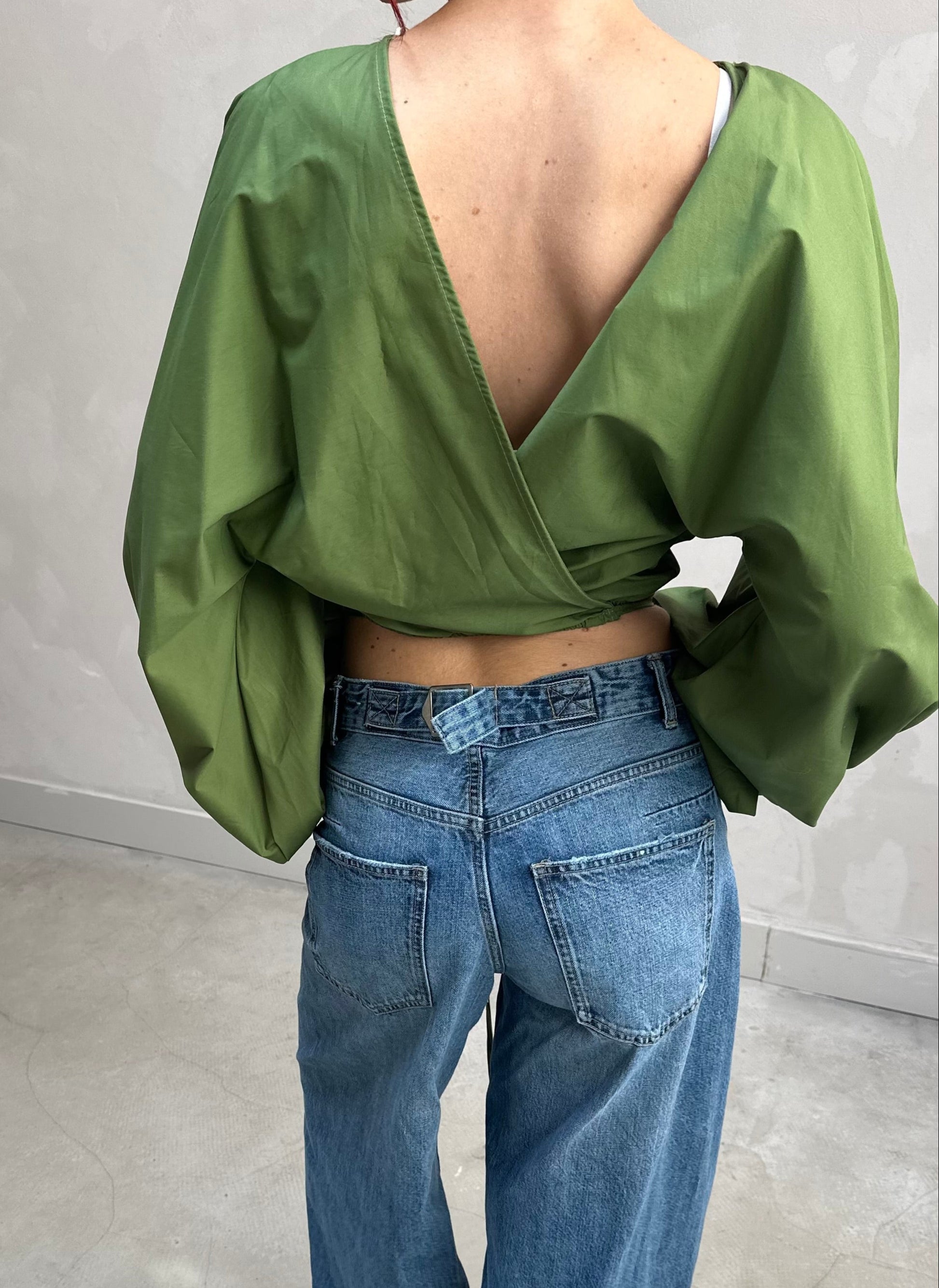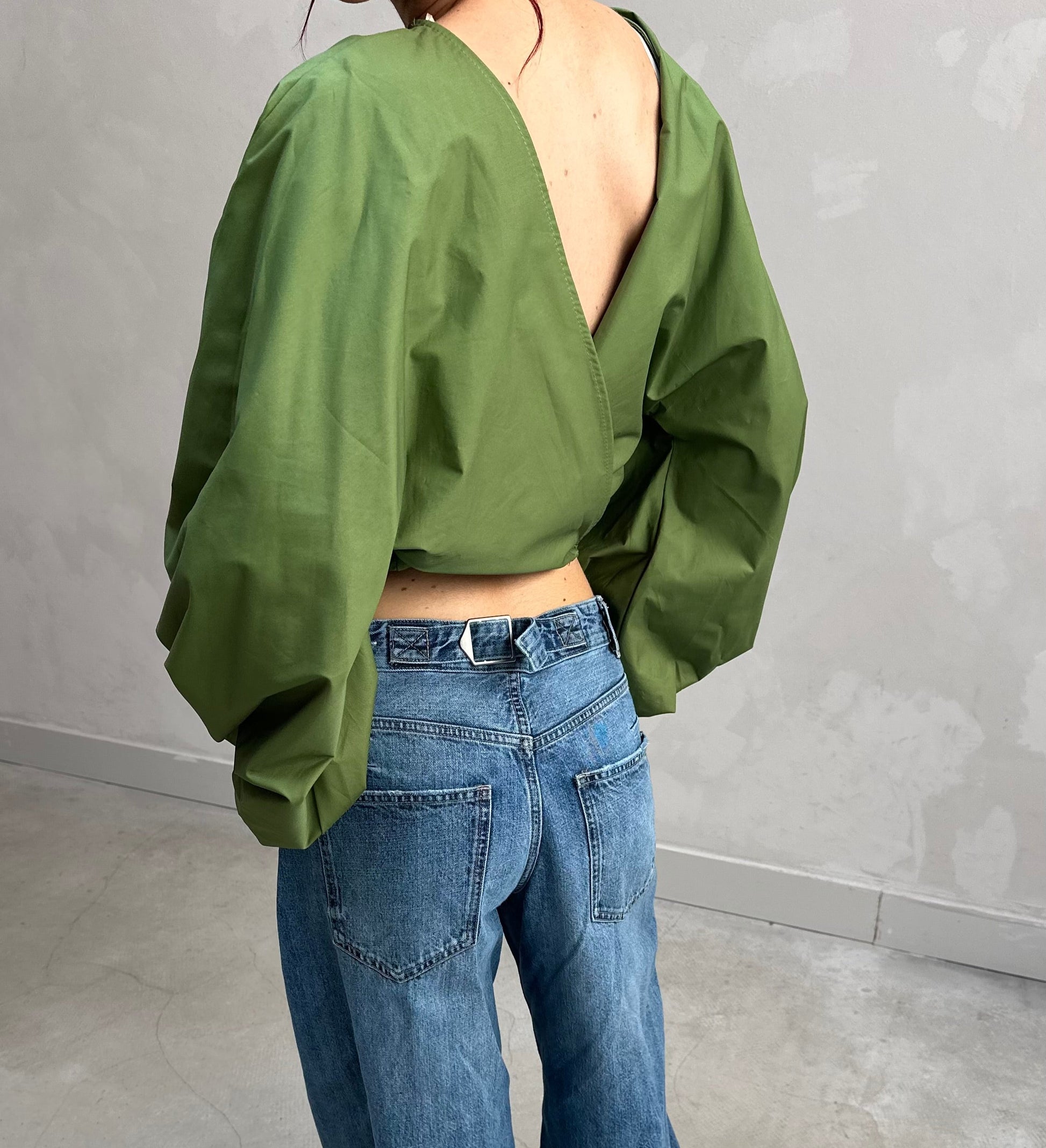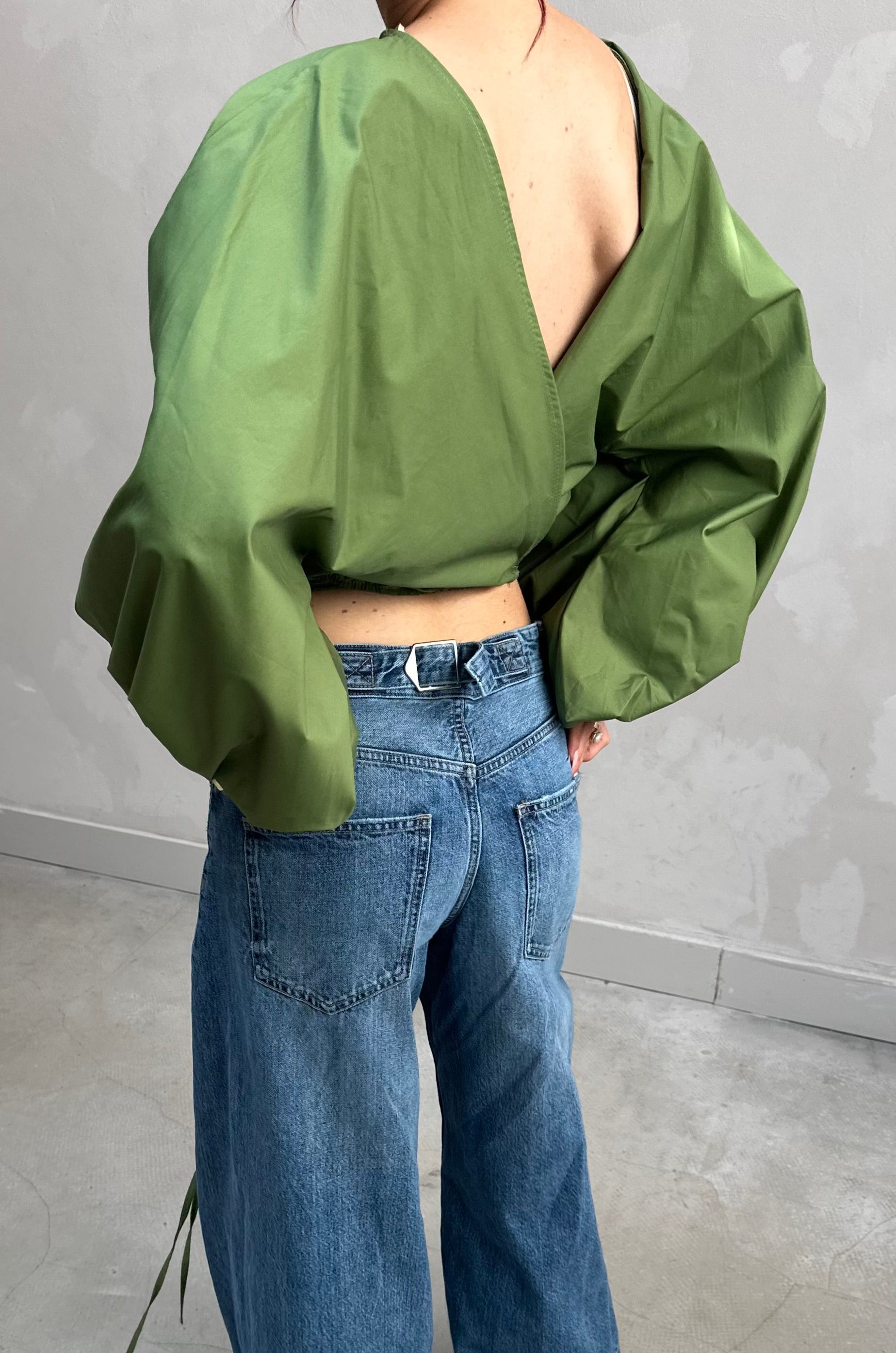 Backless balloon sleeve blouse Green - Curated by UME