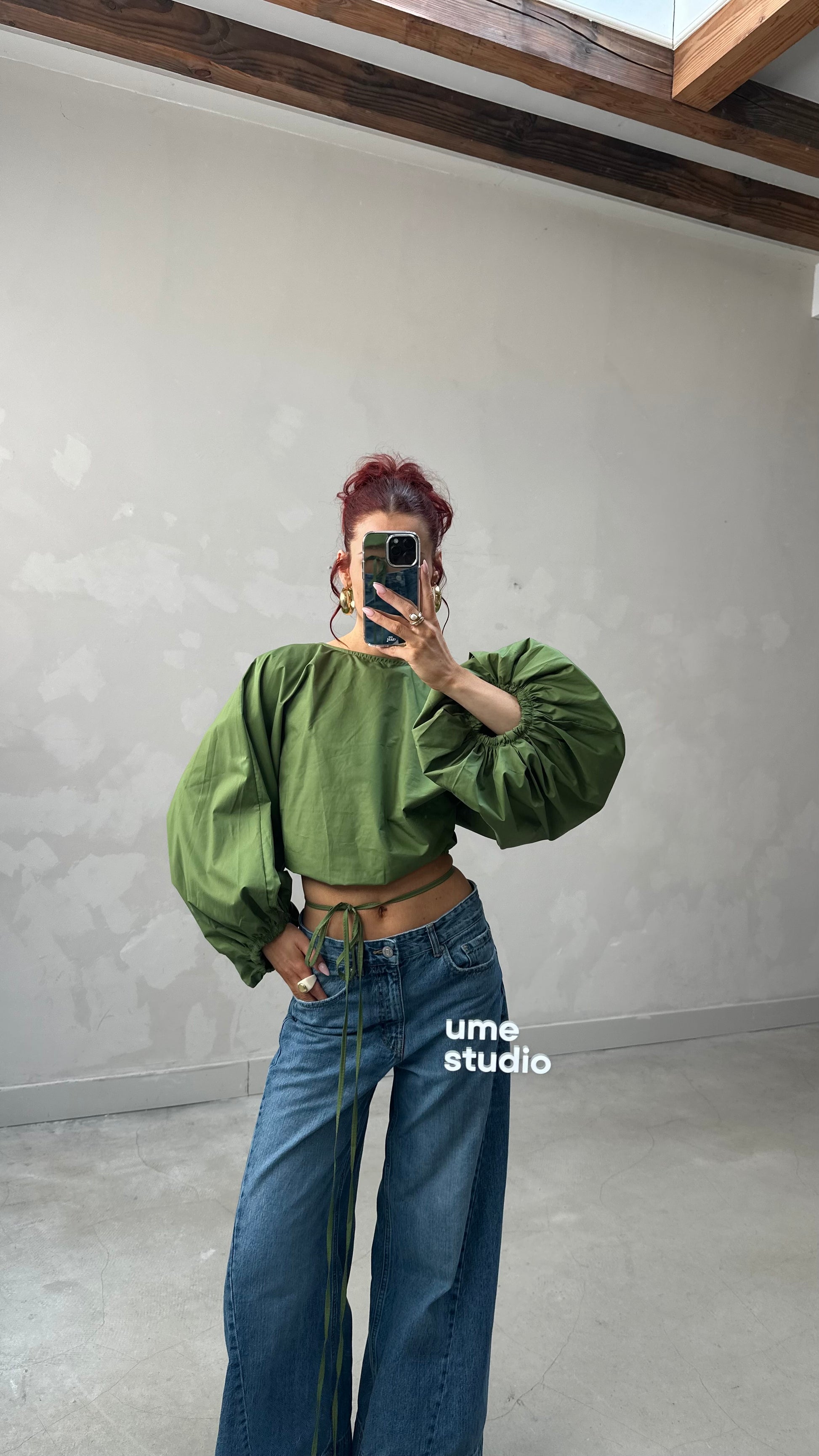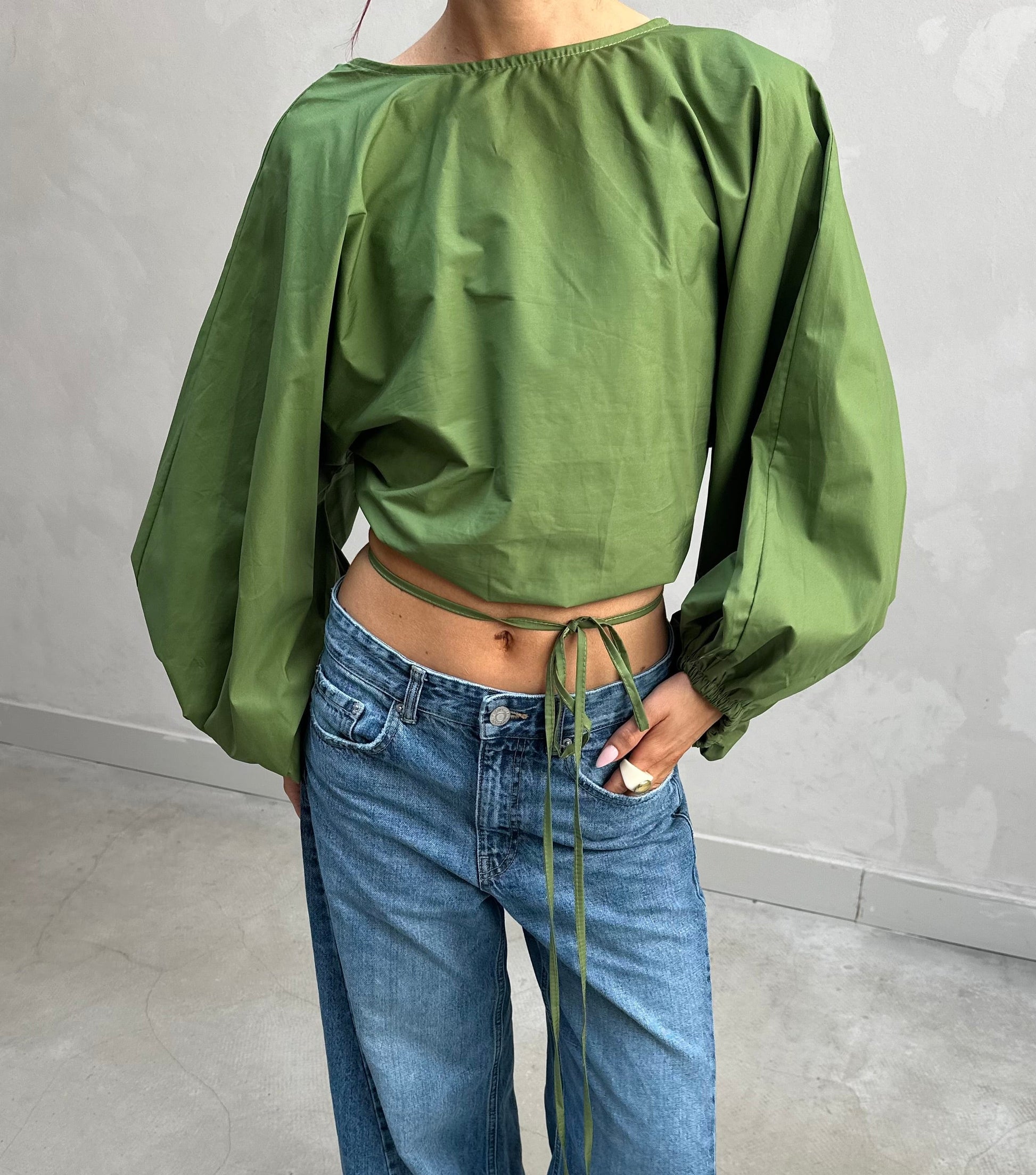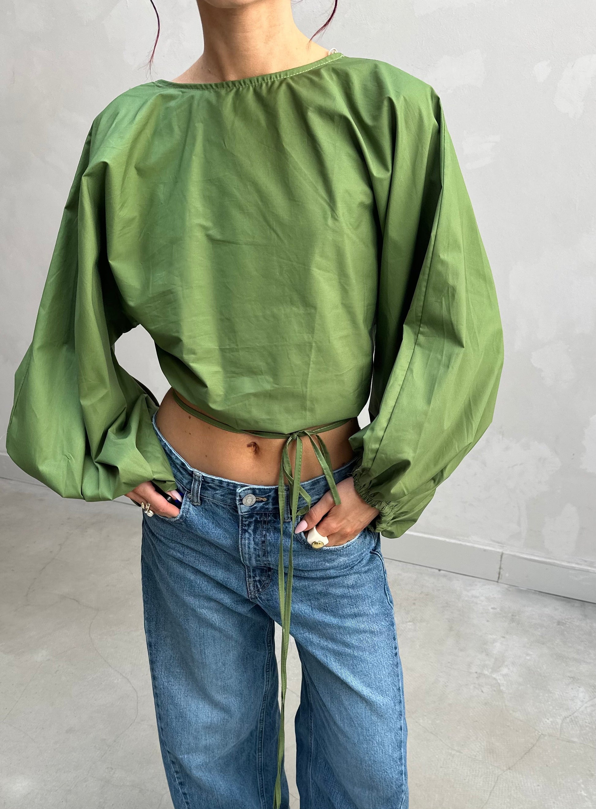 Backless balloon sleeve blouse Green - Curated by UME