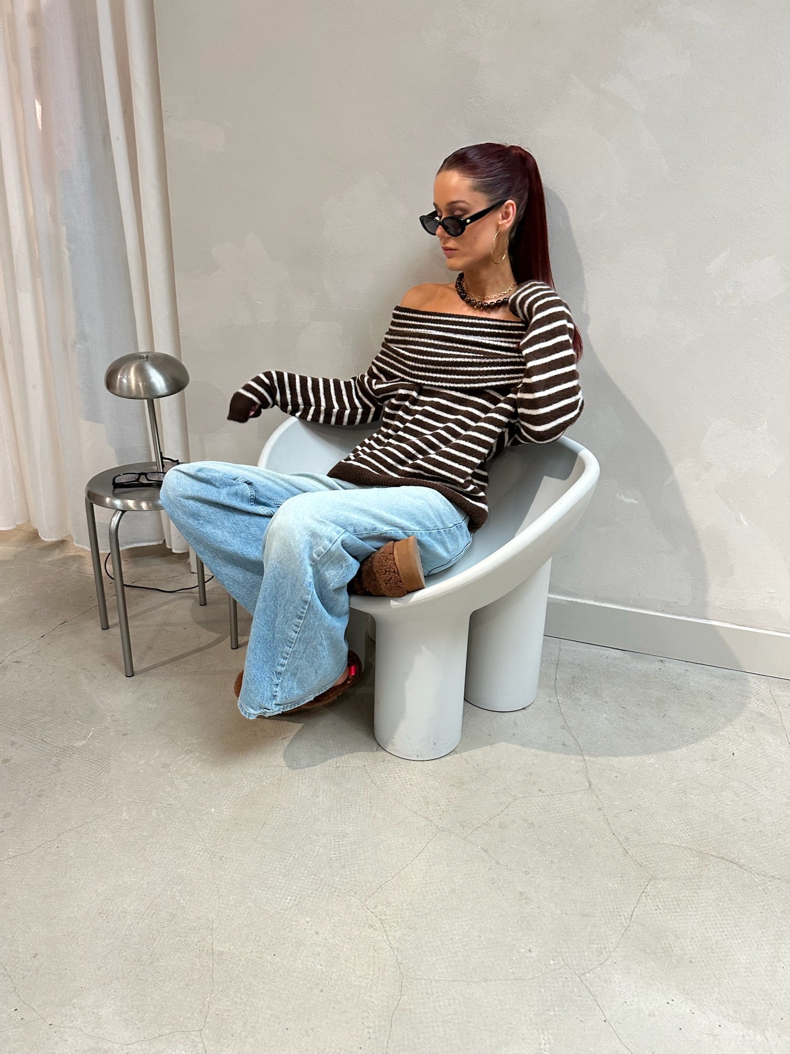 Off The Shoulder Sweater Brown - Curated By Ume