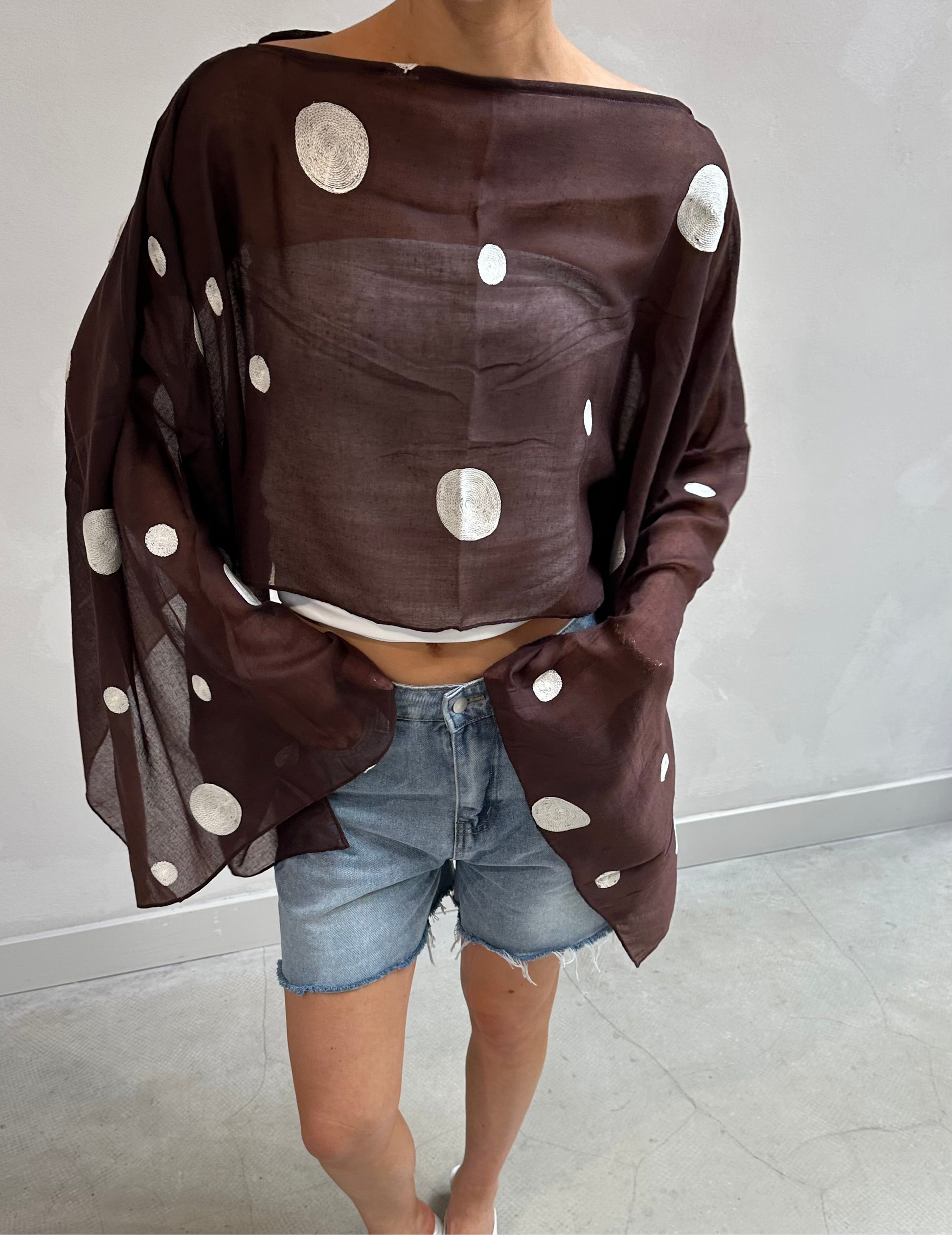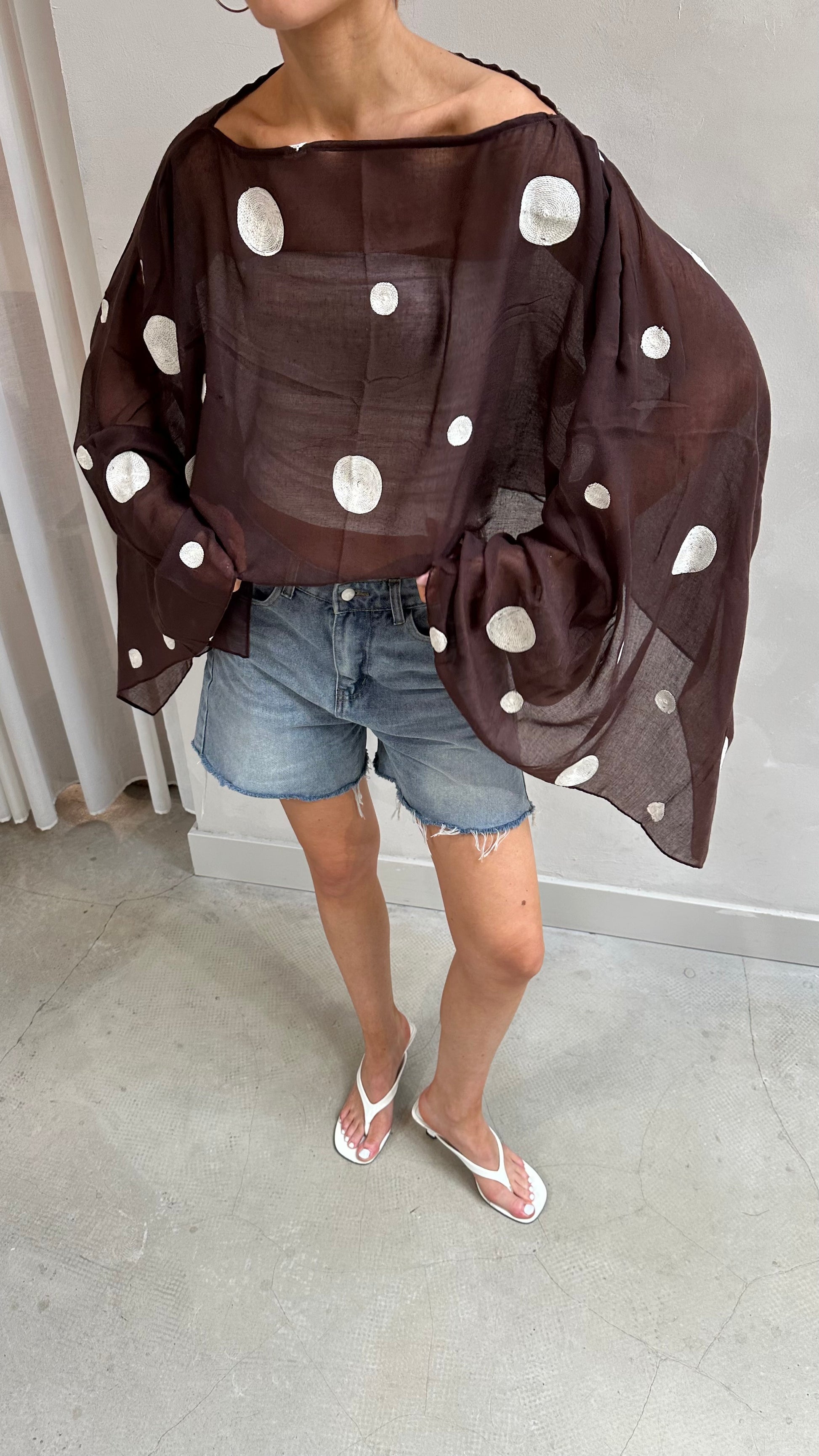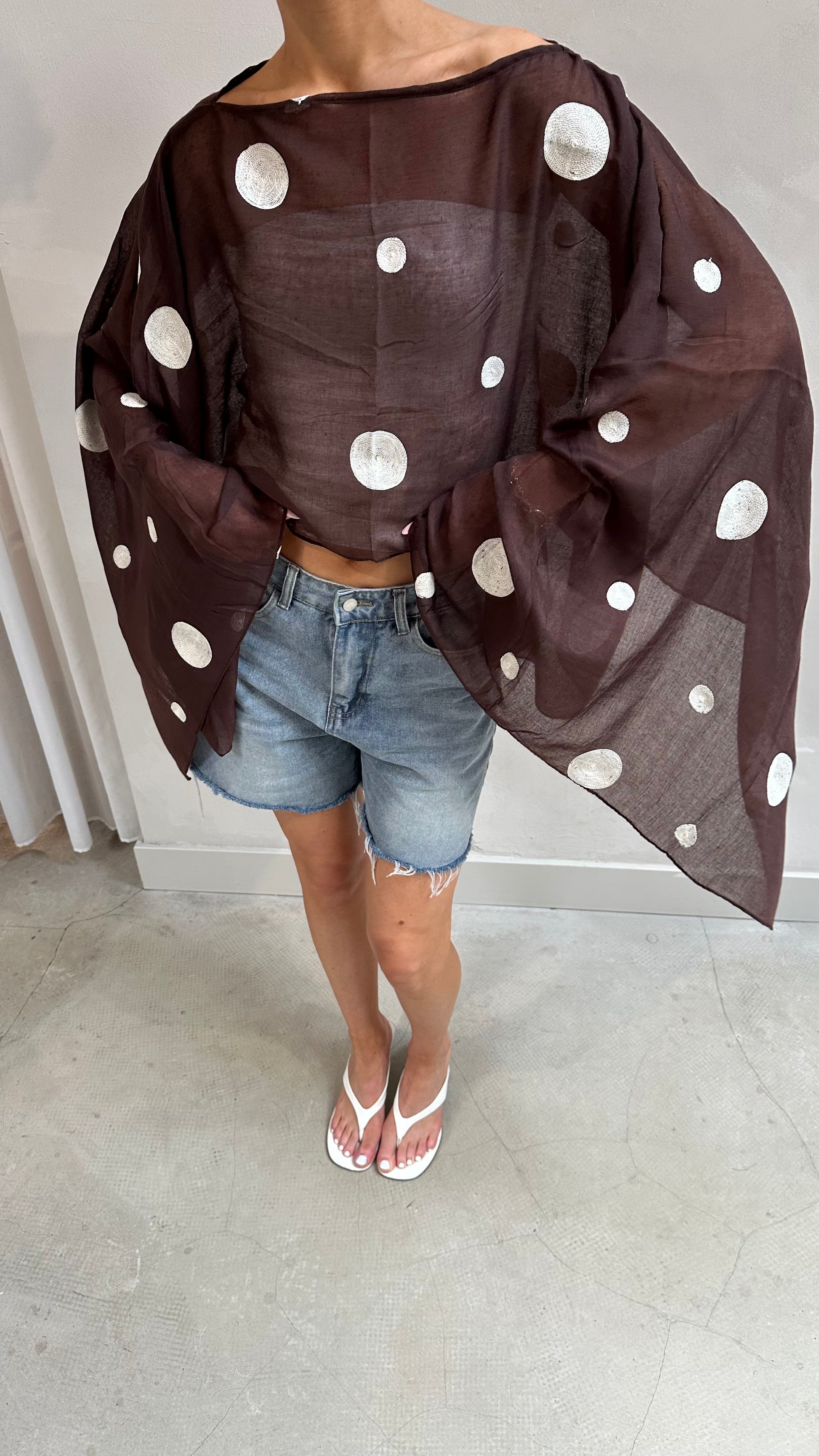 Polka dot butterfly sleeve blouse brown - Upcycled by UME