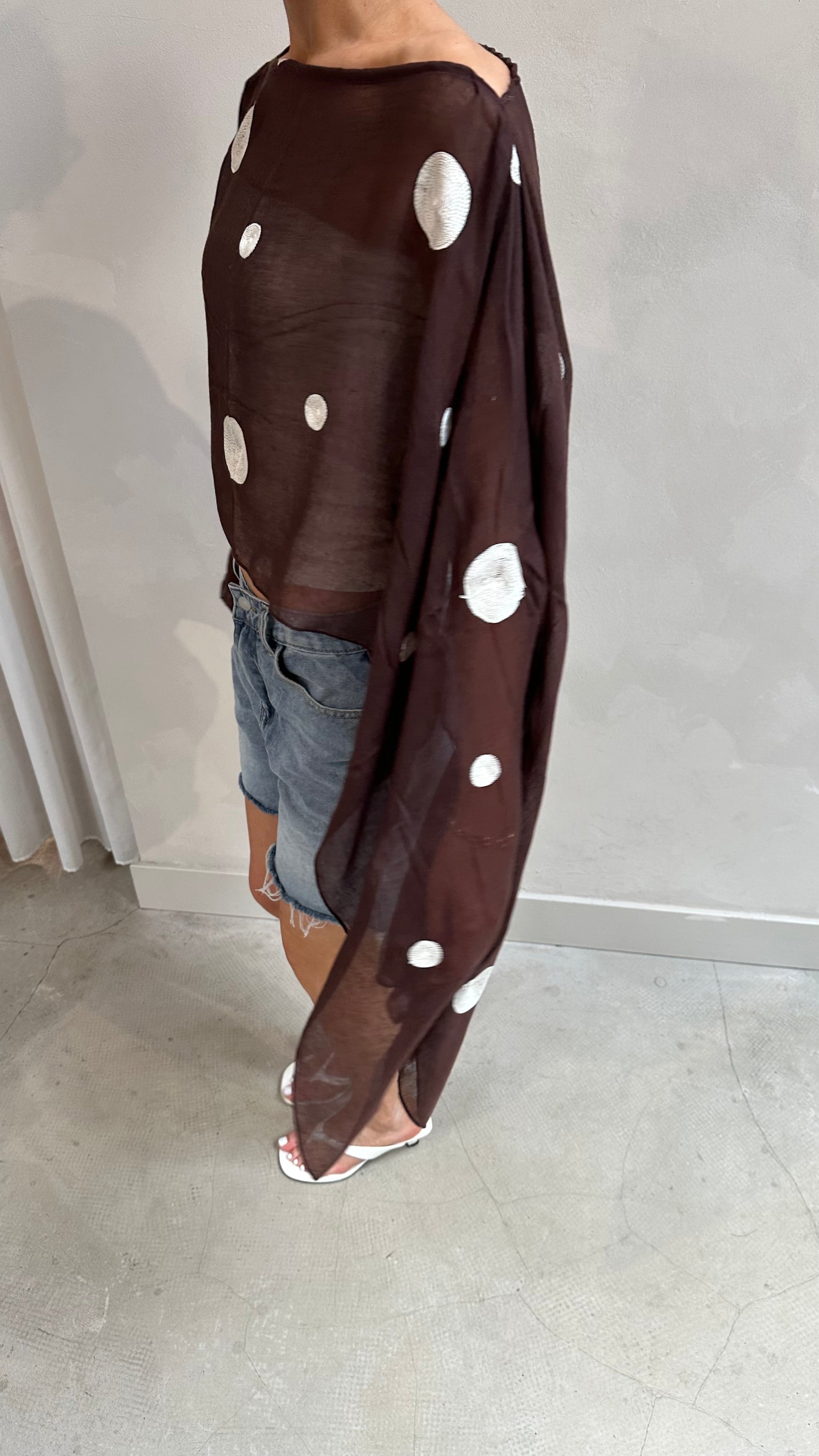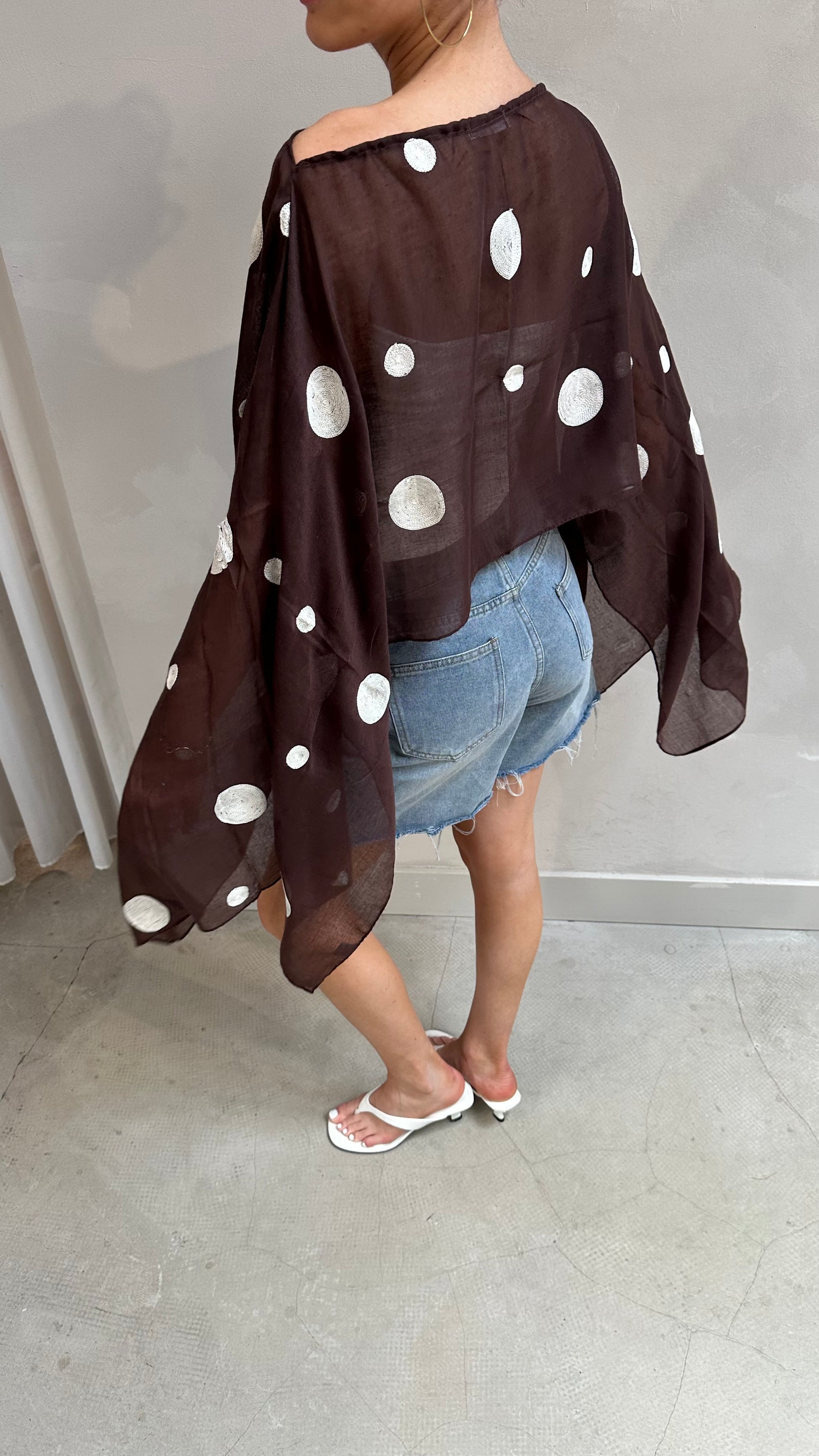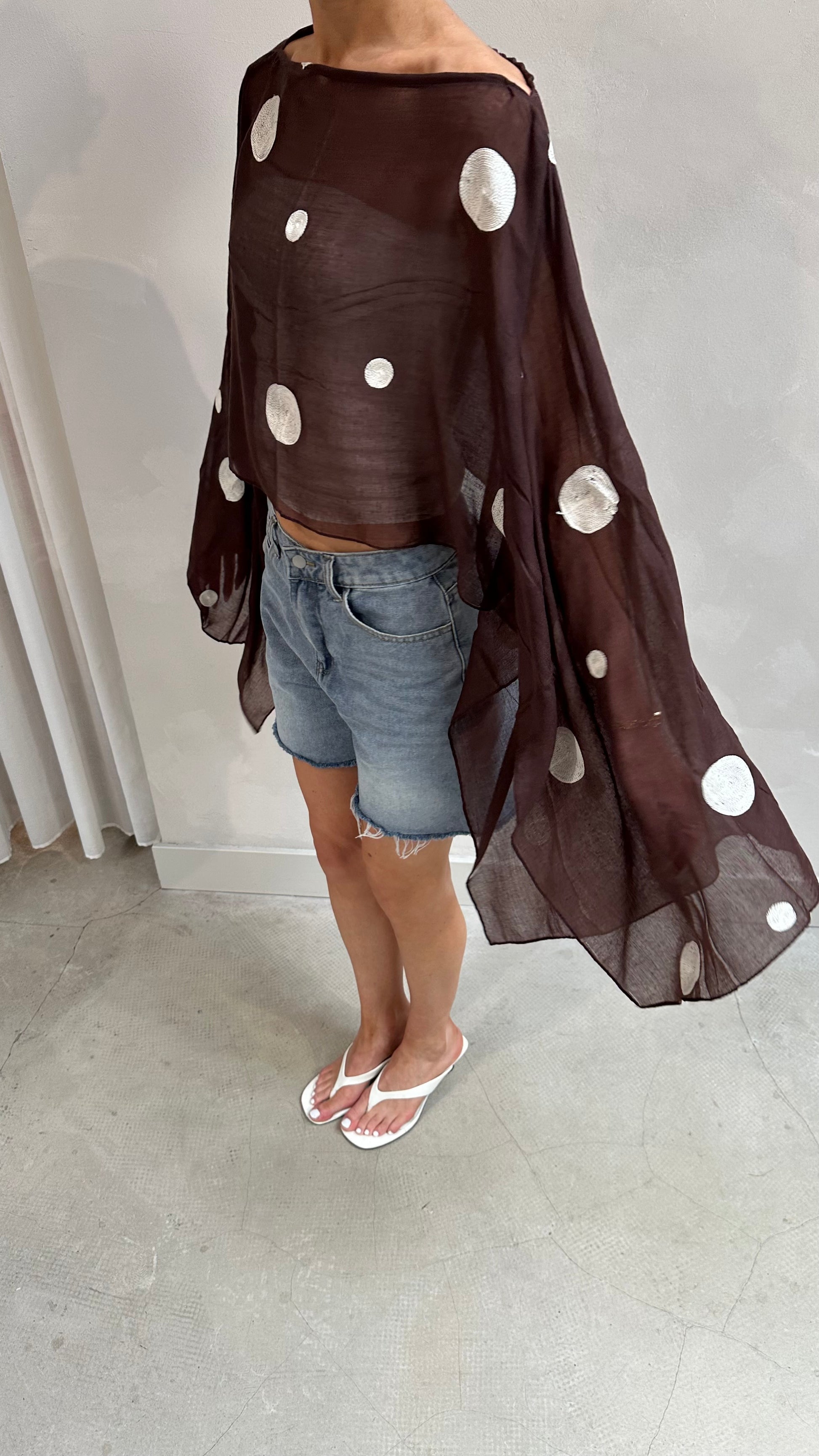 Polka dot butterfly sleeve blouse brown - Upcycled by UME