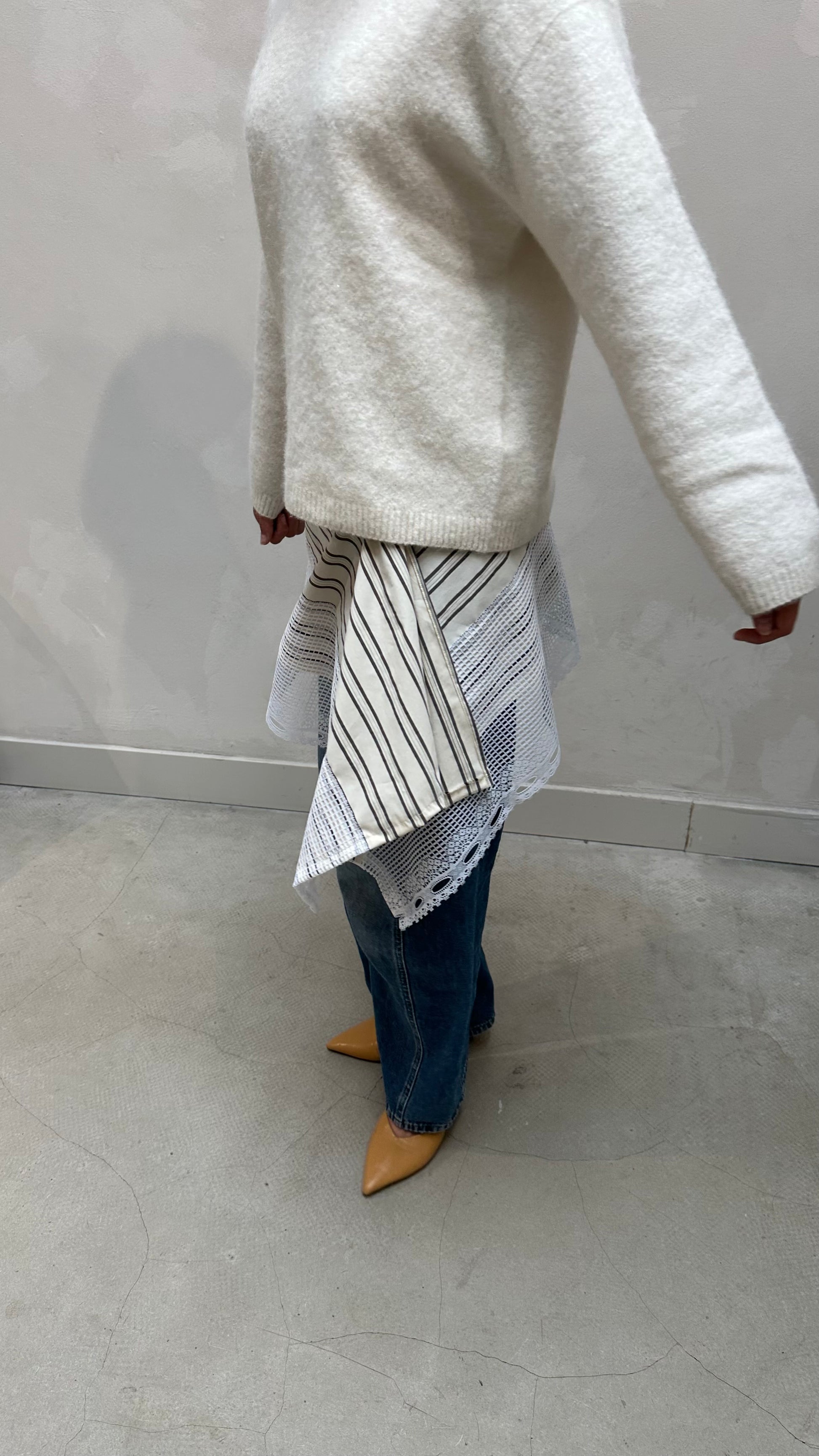 'Upcycled' refers to the creative process of transforming materials into new products, promoting sustainability and reducing wast. We upcycle a selection of our preloved (damaged) items into pieces that are worth giving a second chance.